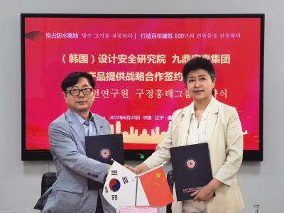 韓國(guó)設(shè)計(jì)安全研究院與遼寧九鼎宏泰防水科技有限公司產(chǎn)品提供戰(zhàn)略合作簽約儀式圓滿(mǎn)成功!